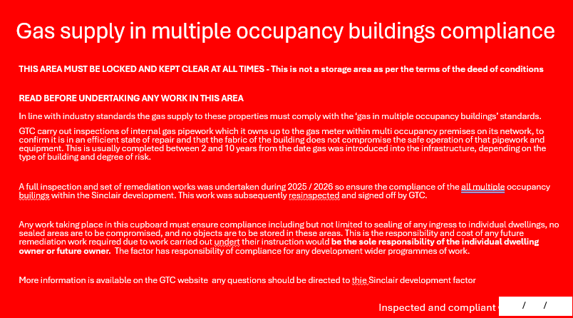 A record of works has been taken during the works and shared with the factor and GTC